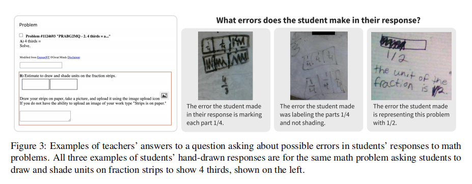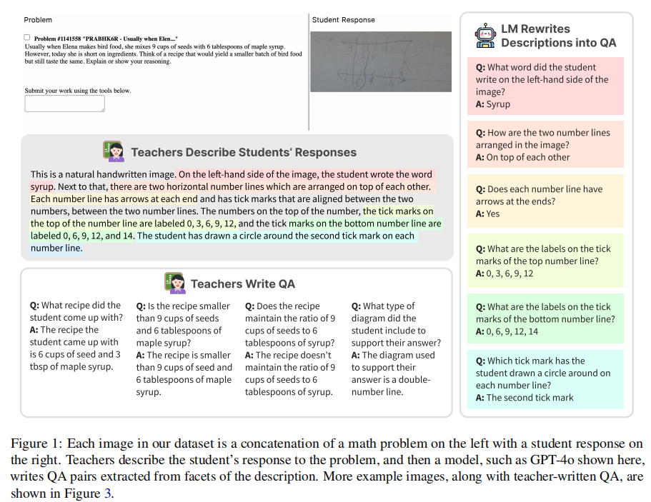 首个教师标注的手写数学数据集:包含2030张K-12学生手写作业图像,搭配教师撰写的详细描述和11661个QA对。