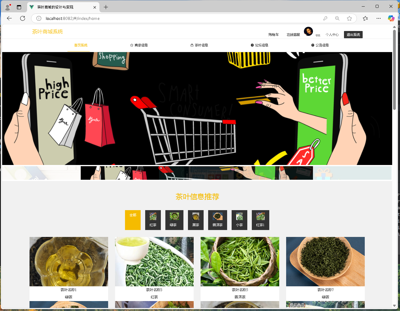 web网页,在线%茶叶商城系统%系统demo,基于vscode,vue,java,jdk,springboot,mysql