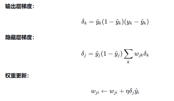 BP算法就像“纠错学习”——网络先猜答案,然后根据错误反向调整每个连接的“强度”,逐步改进。