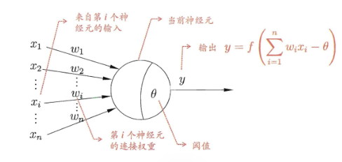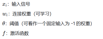 神经元接收来自其他神经元的输入信号,每个输入有权重(表示重要性),总输入减去阈值后,通过激活函数决定输出。激活函数就像“开关”,控制神经元是否“兴奋”。