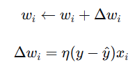 对于每个训练样本 (x,y),如果预测错误(y^≠y),则更新权重: