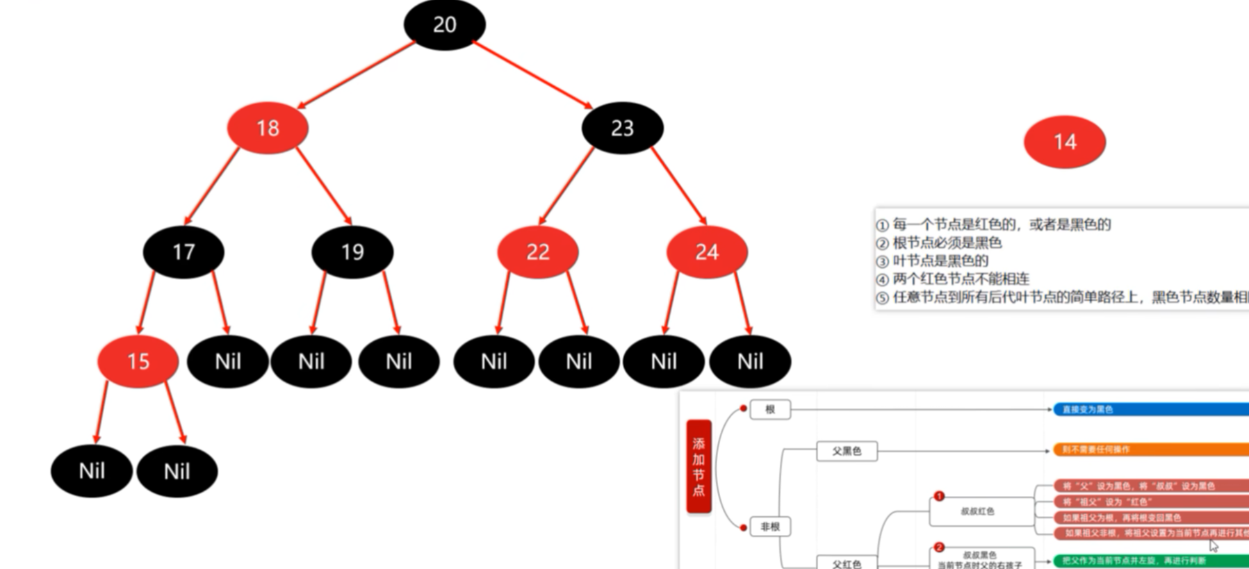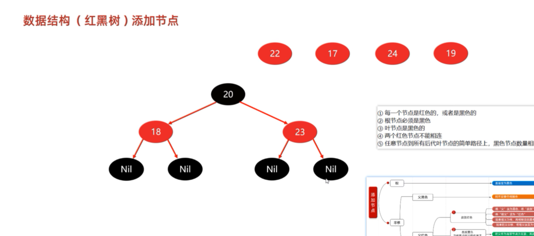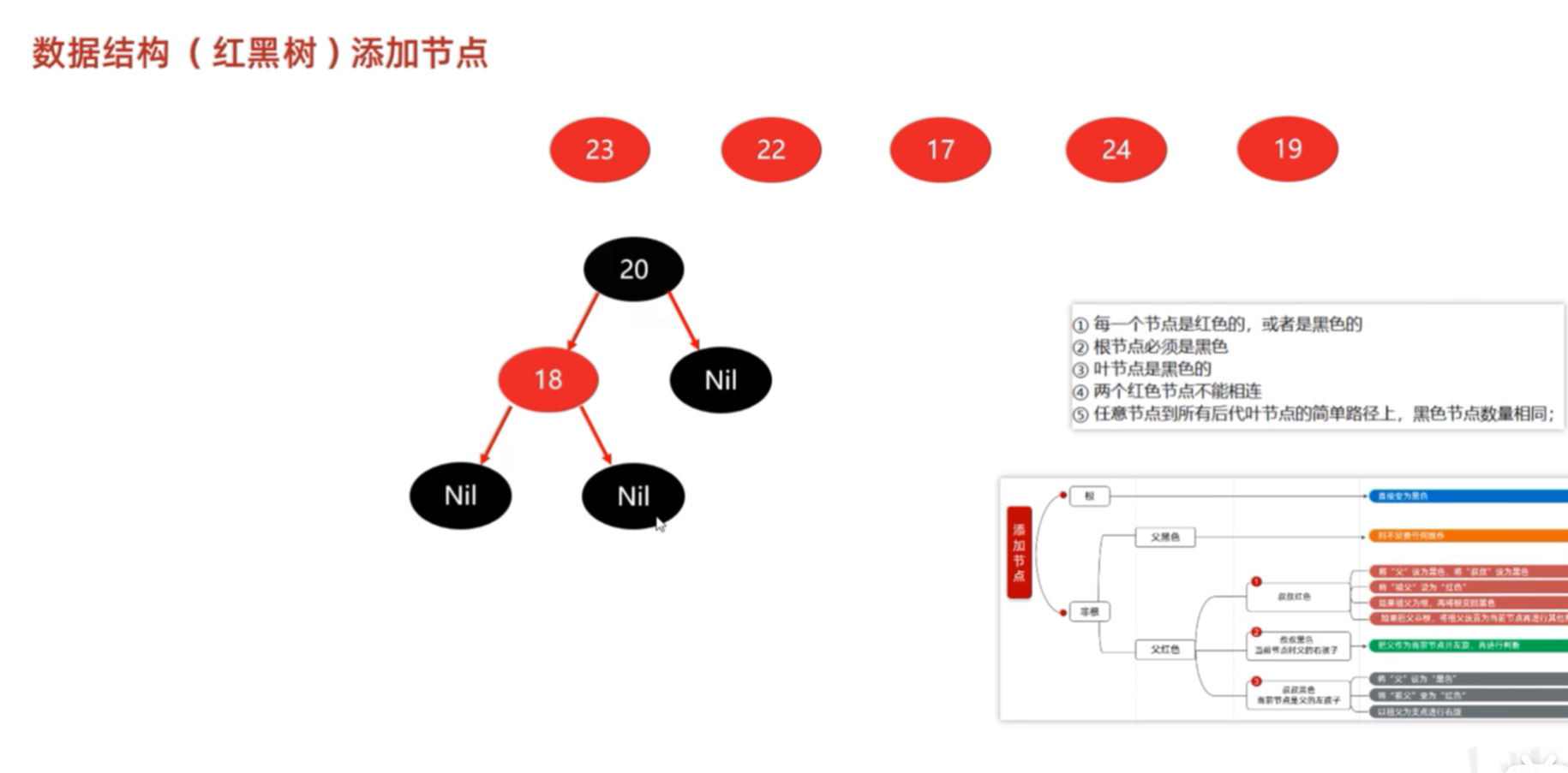 前三步骤完成:最后处理,其祖父18不是根节点,我们要在祖父节点18上再次进行判断。把它当成是当前节点,其18的父节点20是黑色的,不需要进行任何操作。