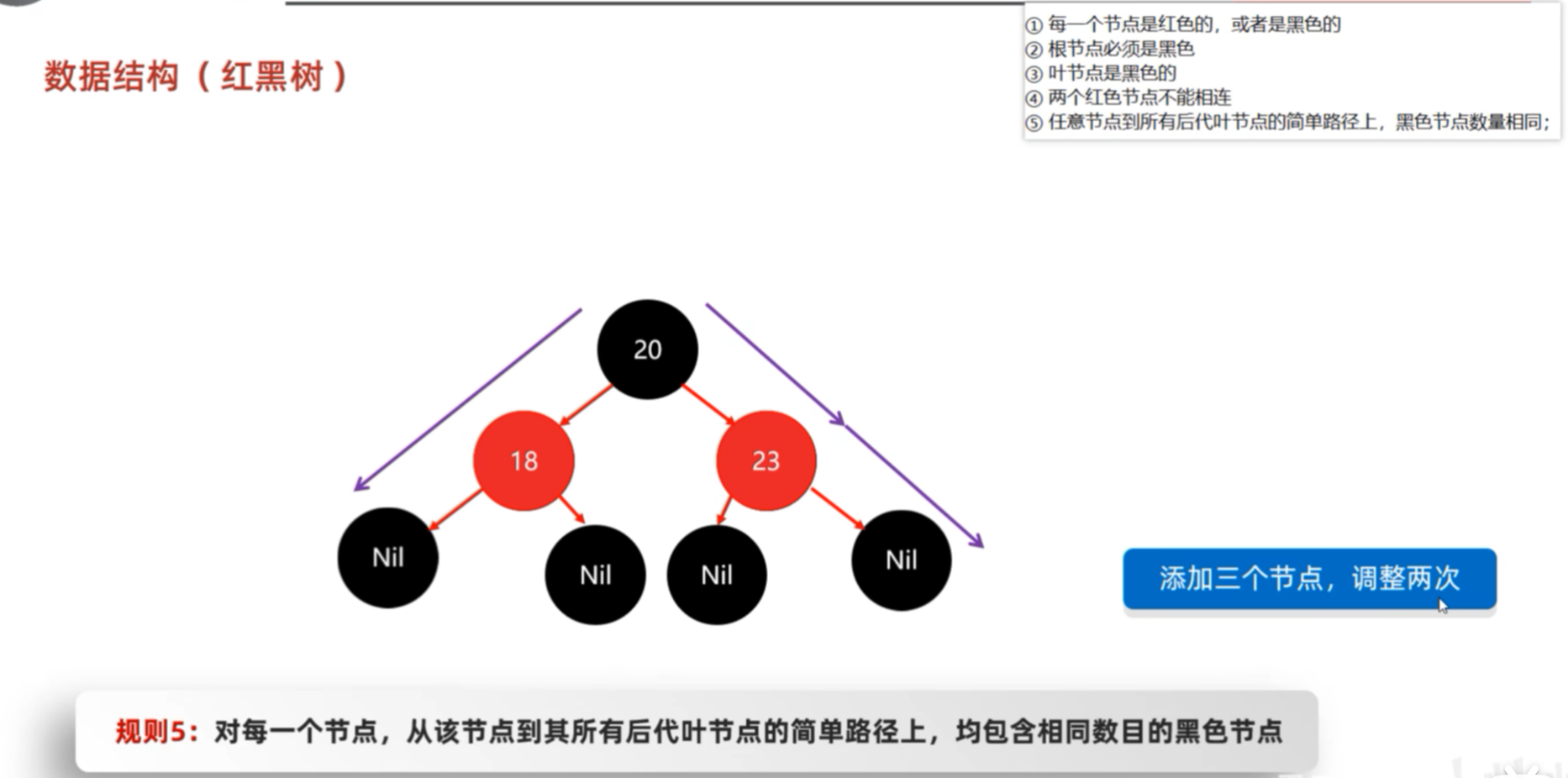 ✅ 这些规则共同保证了:任意路径长度 ≤ 2 × 黑高度 → 最坏情况 O(log n)