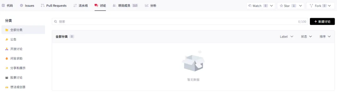 进入SIG项目代码仓,即可看到“讨论”板块。