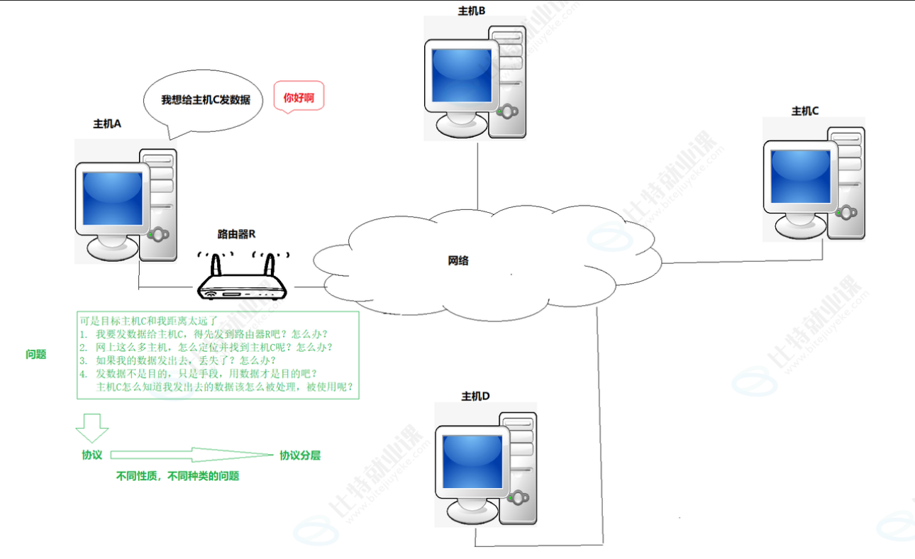 - 其次,网络通信最大的特点就是主机之间变远了。任何通信特征的变化,一定会带来新的问题,有问题就得解决问题,所以需要新的协议咯。