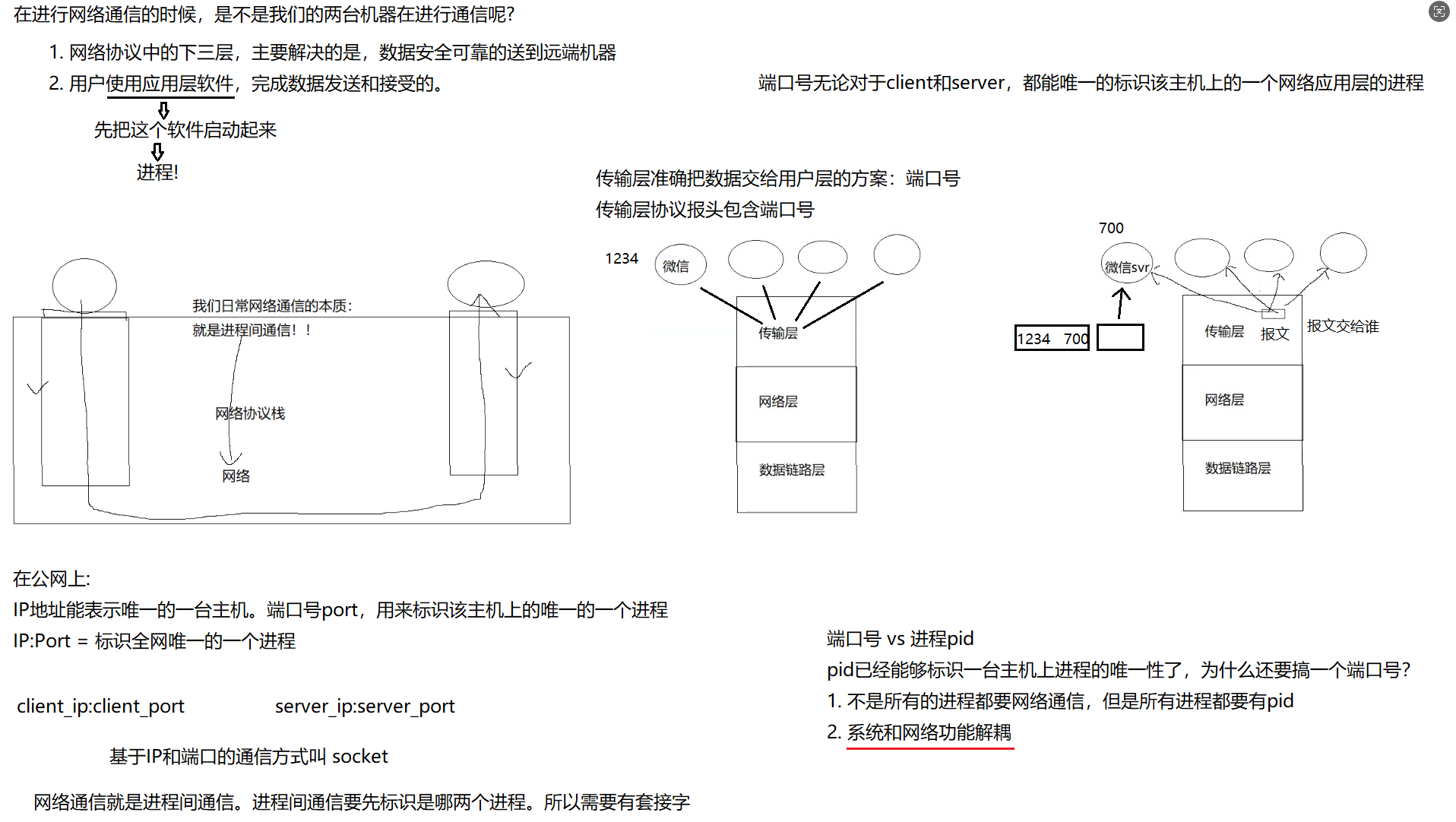 IP地址用于标识主机,端口号用于标识主机上的对应网络通信socket