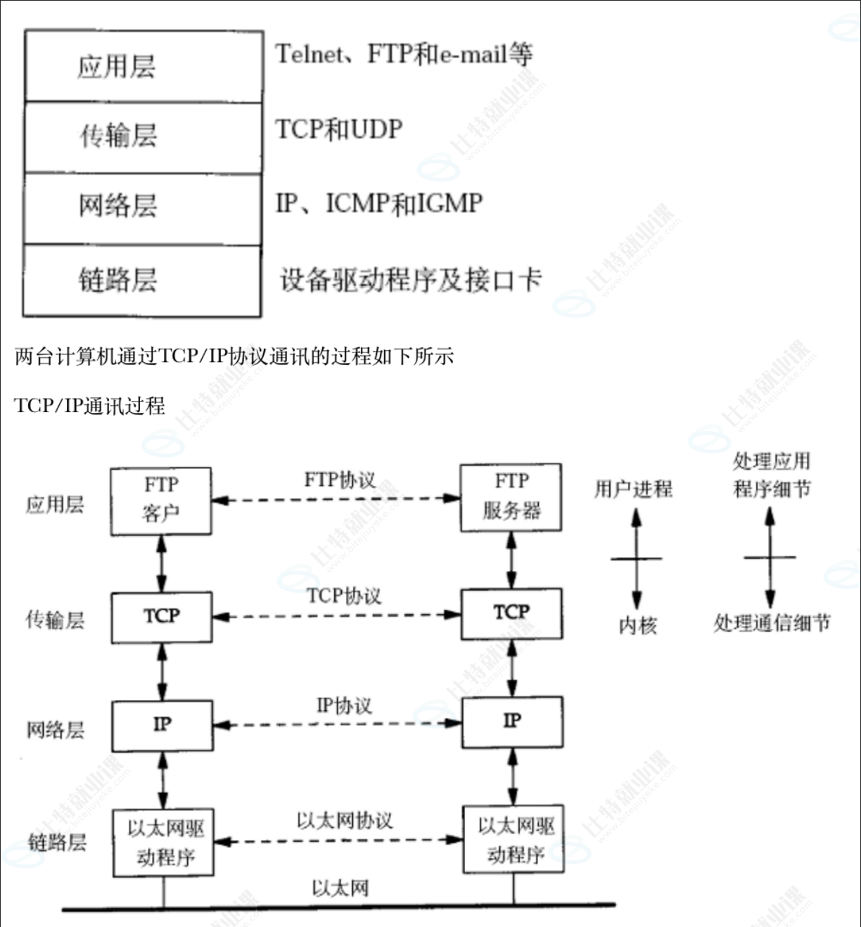 TCP/IP是一组协议的代名词,它还包括许多协议,组成了TCP/IP协议簇。