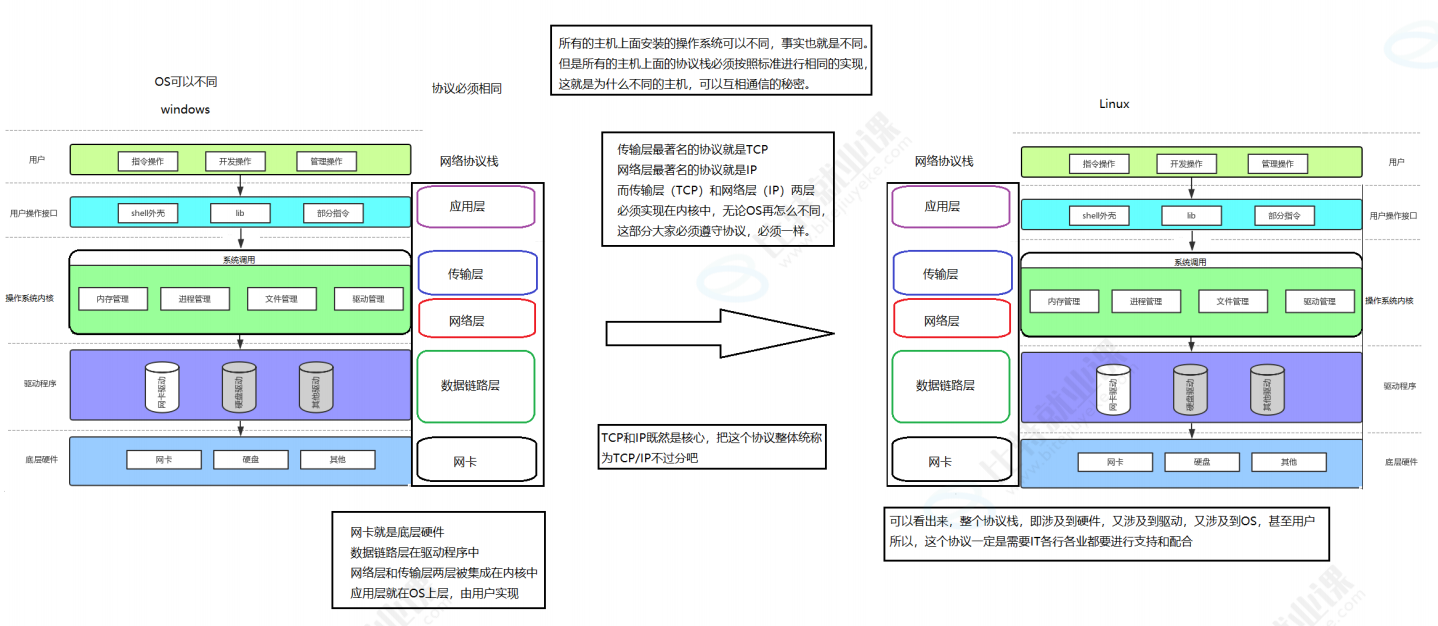 TCP/IP协议与操作系统的关系(宏观上,怎么实现的)