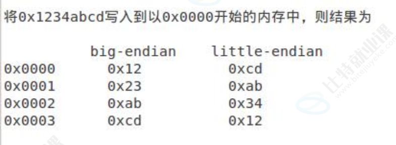 小端:低字节位数据存放在内存低地址处, 高字节位数据存放在内存高地址处