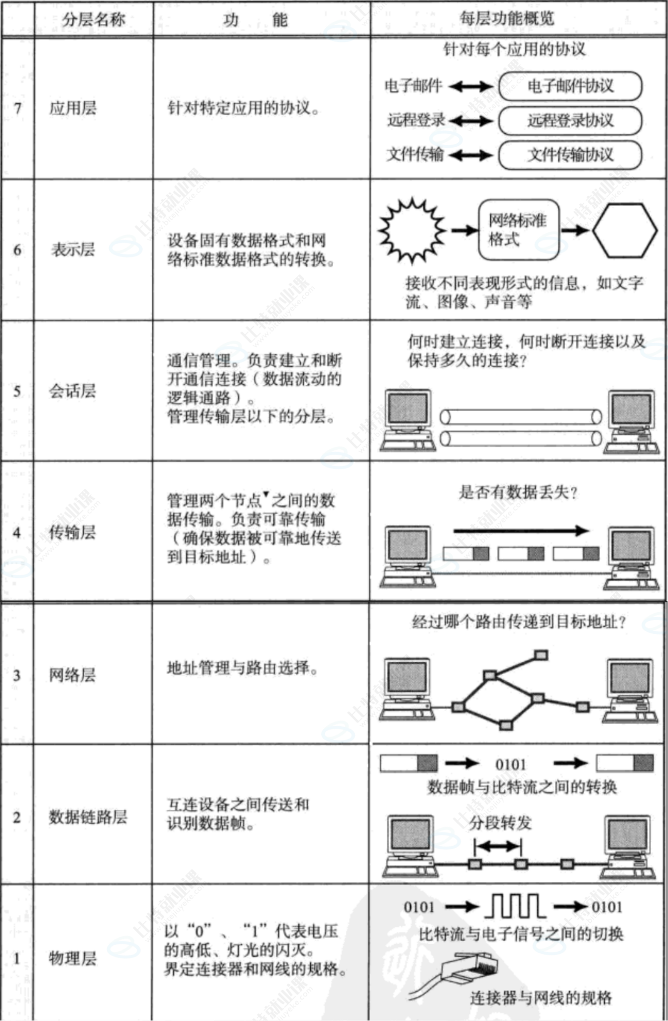 - 它的最大优点是将服务、接口和协议这三个概念明确地区分开来,概念清楚,理论也比较完整。通过七个层次化的结构模型使不同的系统不同的网络之间实现可靠的通讯;