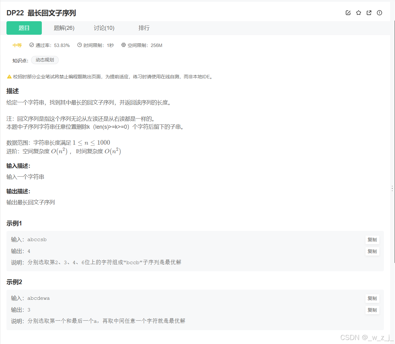 2.对于dp[i+1][j-1]这个确实会出现在不合法区域,但是我们将其初始化成了0,这种情况就是只有ij相邻时才会出现,直接变成了0,执行+2操作,不必特殊处理