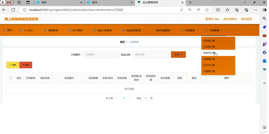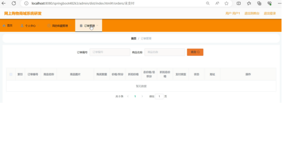如果用户有多个订单,页面将列出每个订单的详细信息,并提供订单的操作选项,如查看详情、取消订单等。用户可以通过订单编号或商品名称进行查询,快速定位到特定订单。页面支持分页显示,当用户的订单数量较多时,可以方便地翻页查看。