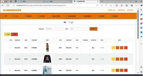 管理员的商品信息管理页面是电器商城管理系统的核心功能之一,主要用于管理和审核网站上所有商品的相关信息。在该页面,管理员可以查看所有商品的基本信息,包括商品名称、类别、月售销量、商家名称、商品价格和审核状态等。商品信息按顺序展示,管理员可以快速浏览并管理每个商品的详细信息。