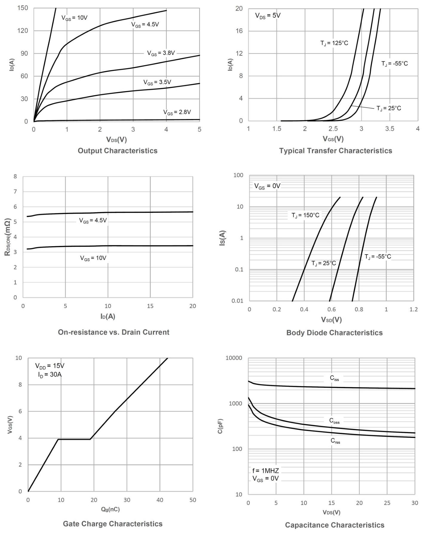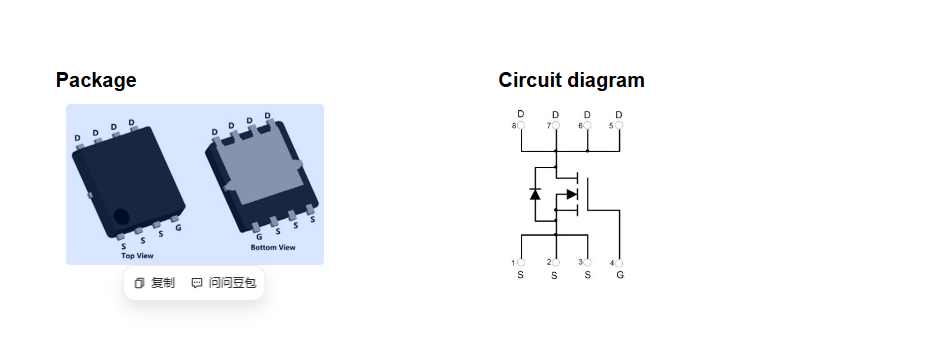 - 导通电阻:VGS=10V、ID=20A 时,导通电阻 RDS (on) 典型值仅 3.3mΩ;VGS=4.5V、ID=10A 时典型值 5mΩ,低导通损耗有效提升电路效率。