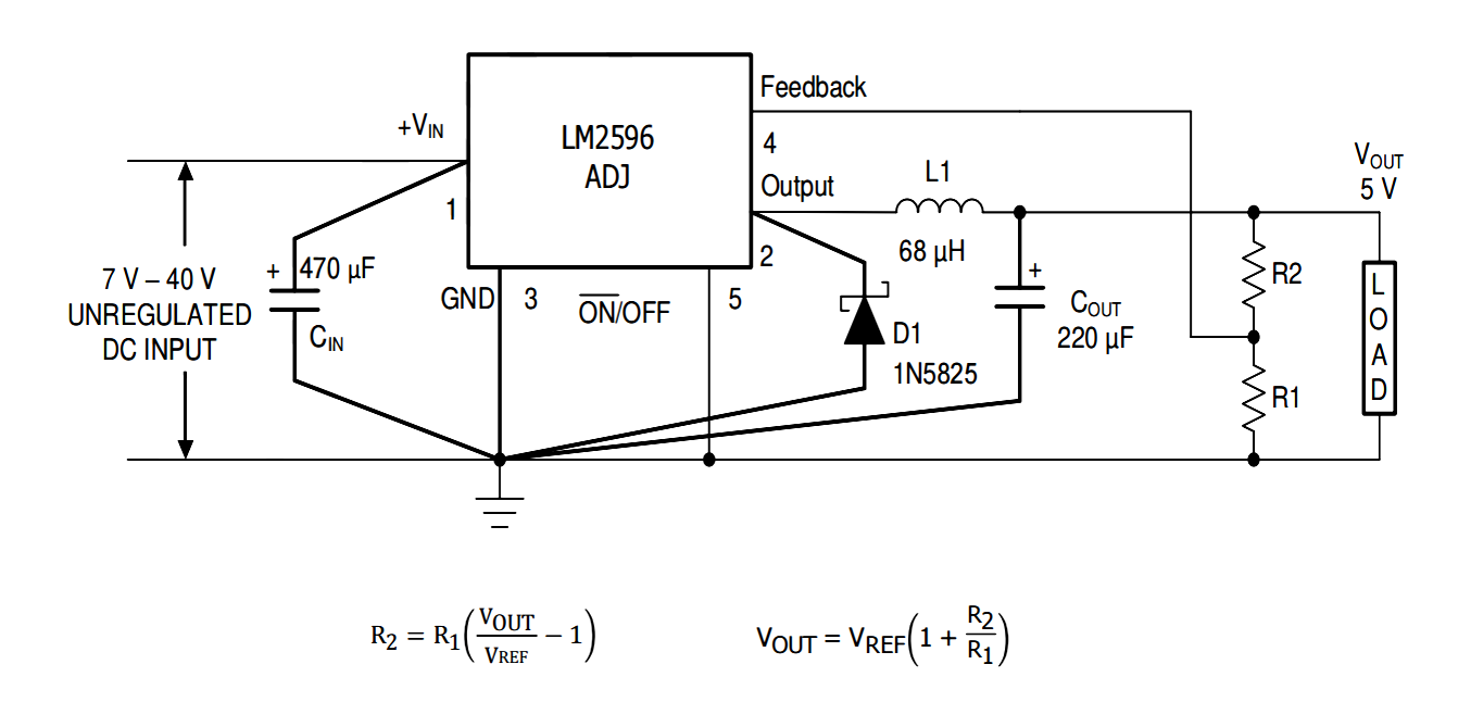 可调版本通过两个外部电阻设置输出电压,公式如下: