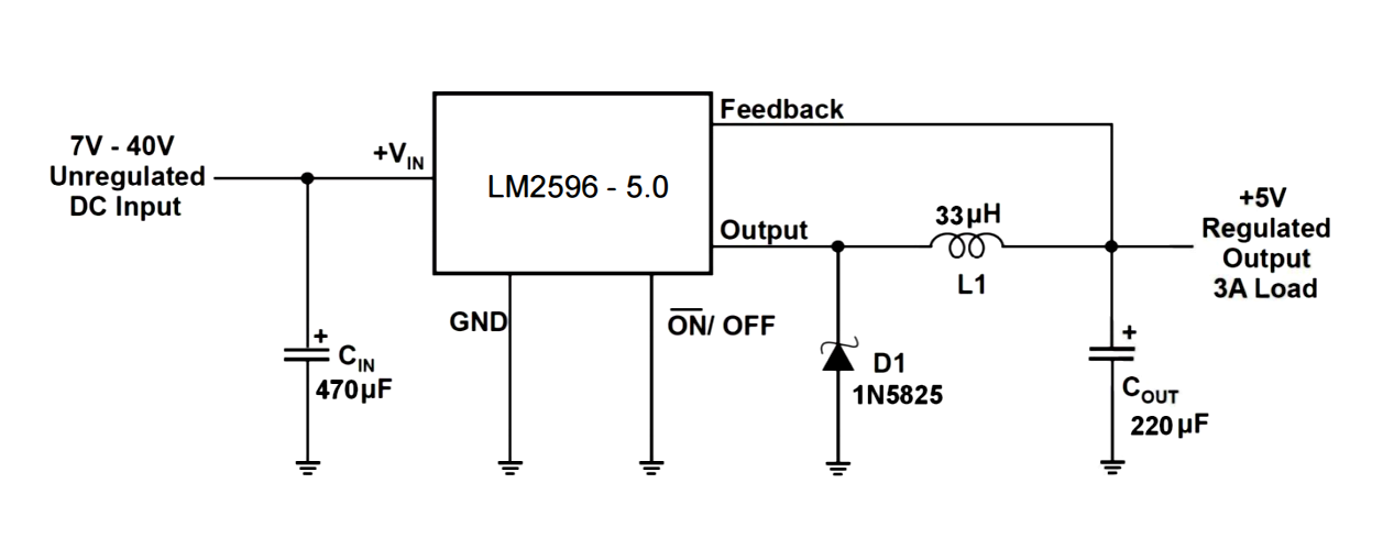 LM2596采用150kHz开关频率,配合外部电感和快恢复二极管,效率最高可达88%以上,显著降低系统发热。