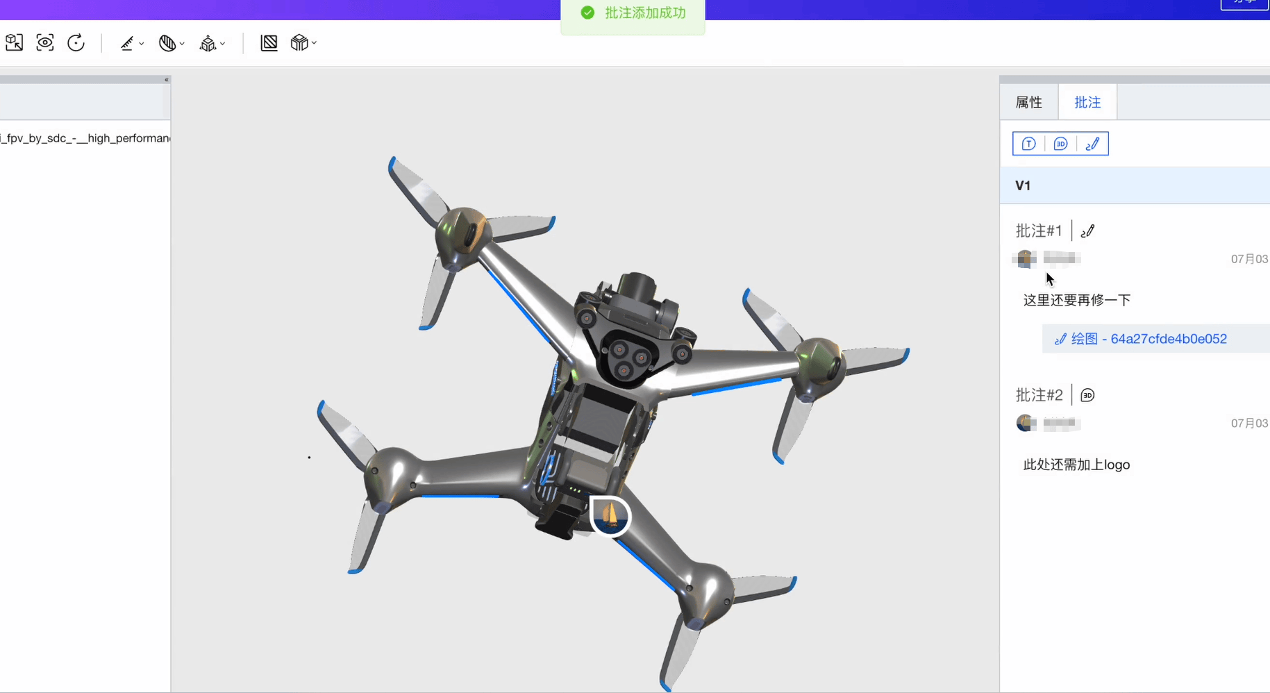 车间质检人员在MES可以轻松打开查看产品模型,通过尺寸测量、体积重量计算、包围盒尺寸信息检验实物产品合规性,使用剖切、爆炸图操作比对实物产品存在加工有误、装配漏件等问题,在模型上即时圈阅批注反馈问题,更高效的辅助现场质检作业。