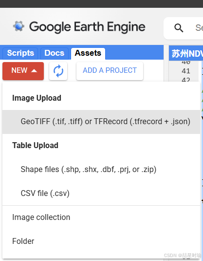 在 GEE Code Editor 左侧的「Assets」中上传你的 shapefile(包含省、市等行政区边界),上传完成后系统会生成一个资产路径(如:projects/your_project_id/assets/jiangsusheng)
