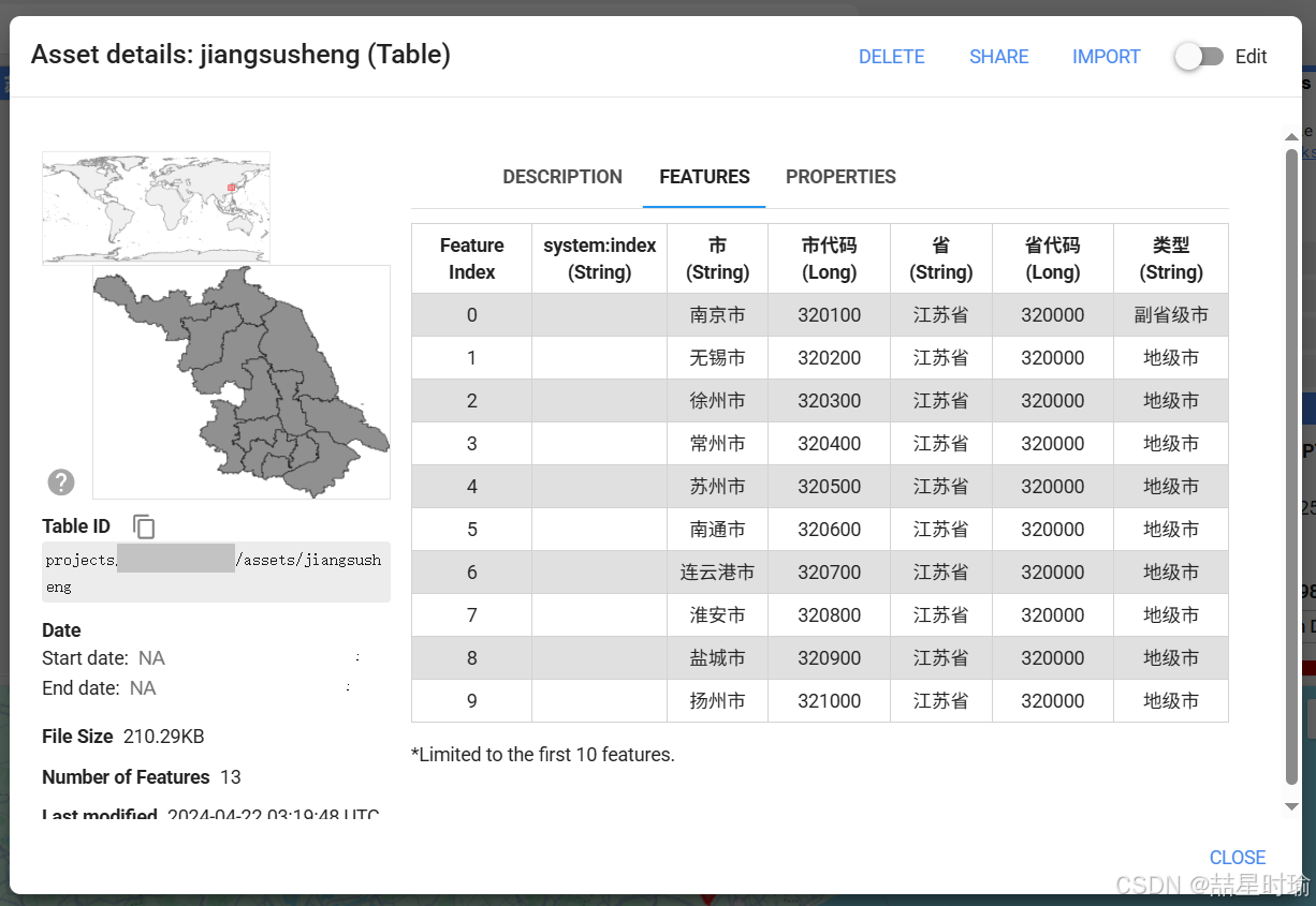 var suzhou = ee.FeatureCollection('projects/your_project_id/assets/suzhoushi');// 查看结果