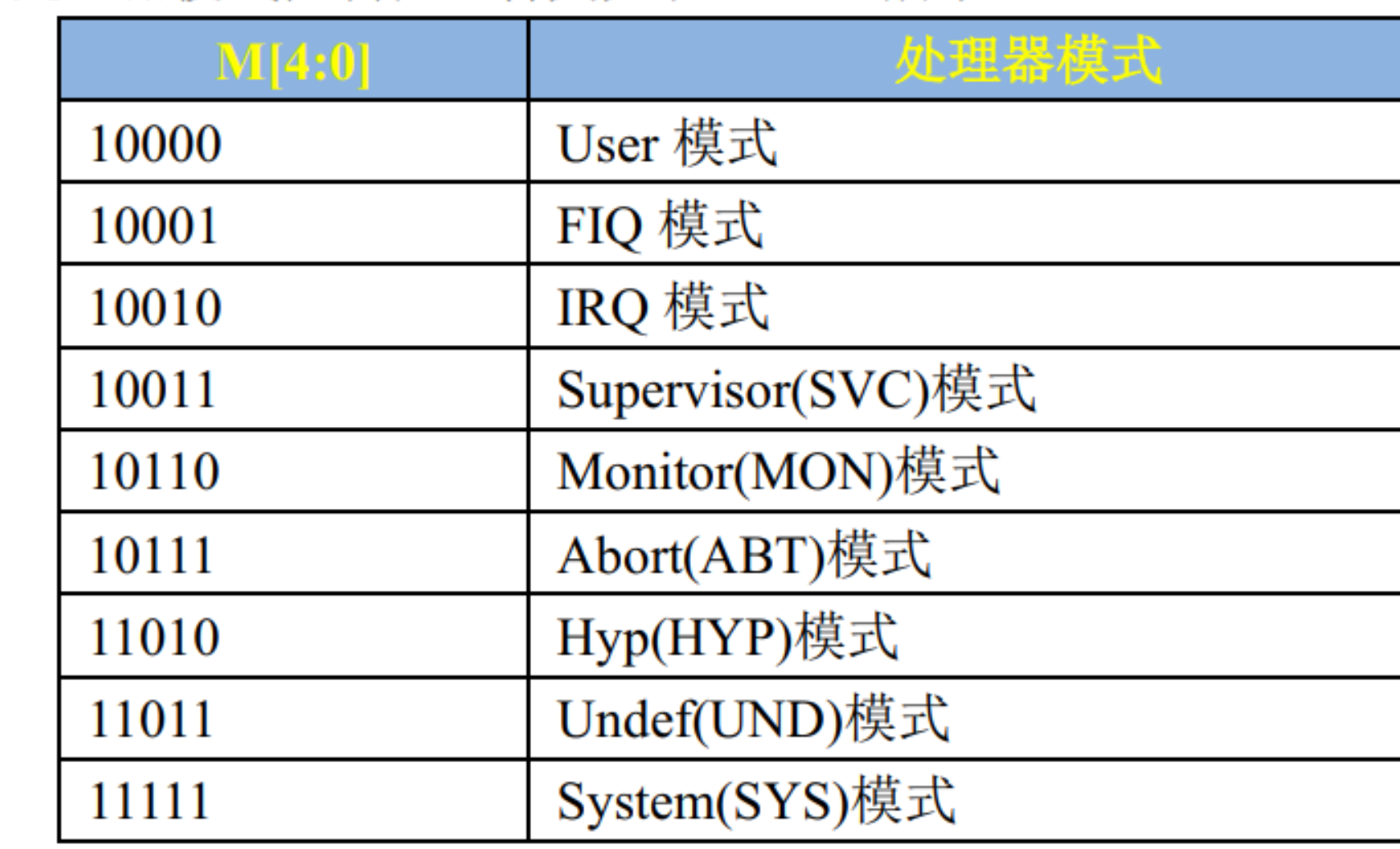 F = 0时,FIQ快速中断异常模式不被屏蔽(当前处理器可以进入到FIQ模式下)