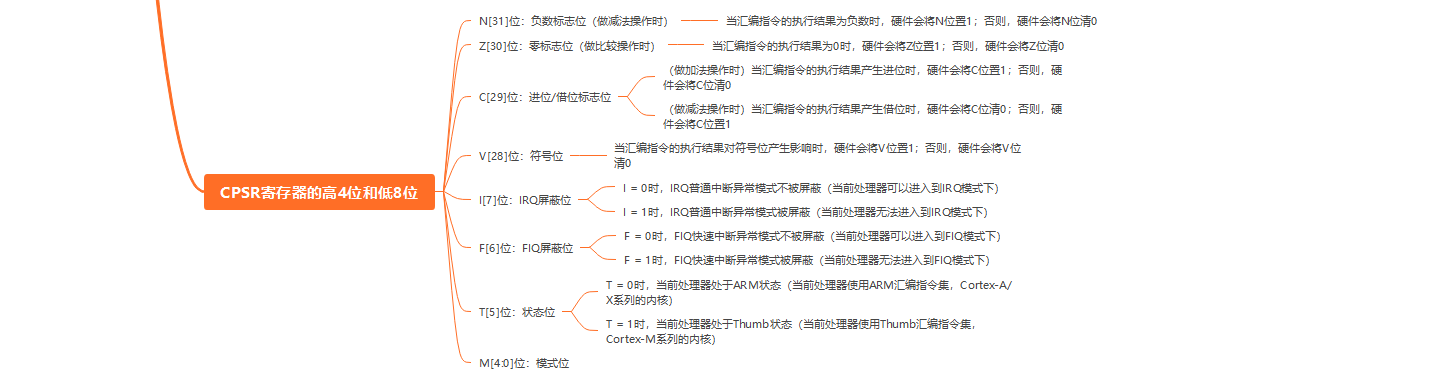 当汇编指令的执行结果为负数时,硬件会将N位置1;否则,硬件会将N位清0