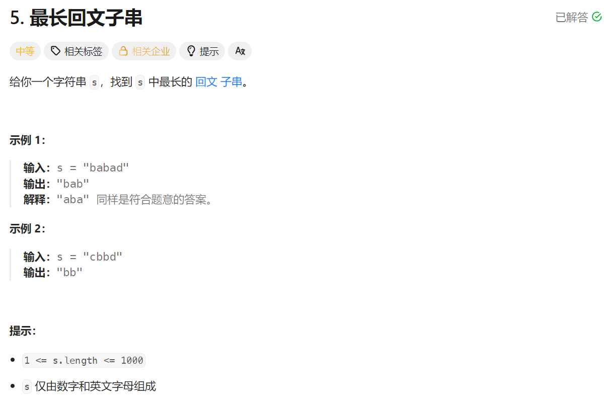 我们发现颠倒后绿框内的字符串仍然能够保持相等,所以这个字符串就是最长的回文串