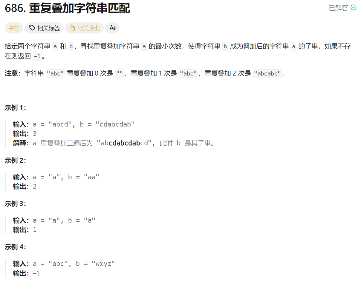 比较不同的是第二点,题目是叠加字符串,在叠加的字符串里面找到目标子串,但是显然,不能盲目生成主串,我们得考虑一下主串大概有多长,