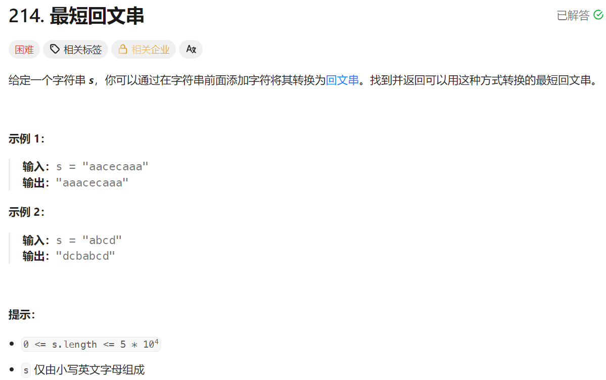 这里题目说白了就是找到从开头开始算最长的回文串,因为叠加的越长,整体就会越短