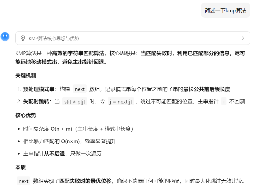 kmp算法的本质就是告诉你下一次退回到哪个位置可以和主串的下一个字符进行比较最省事