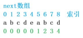 当然这个next数组的写法不尽相同,有的习惯全部-1,有的人习惯右移1位,这些都是按照后面的匹配规则来的,都是正确的,甚至还有升级版的nextval数组,这里就不提了