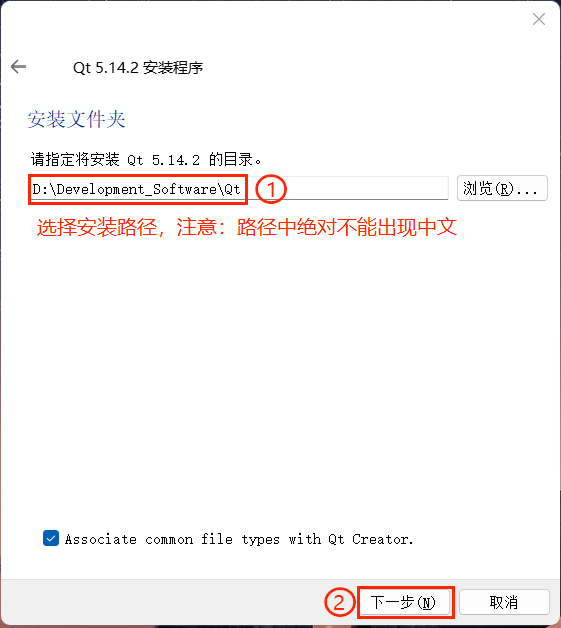 三. 选择安装路径时不能出现中文路径,否则即使安装上也无法使用