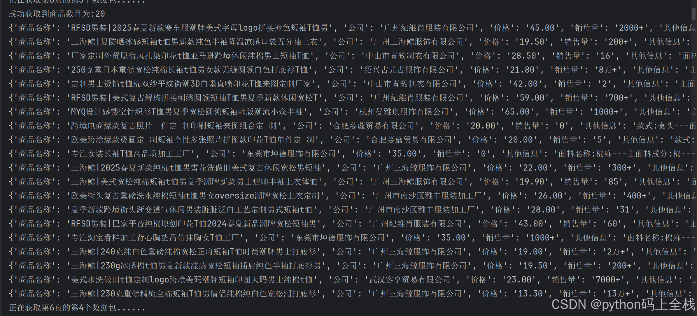 在B2B电子商务蓬勃发展的今天,1688作为阿里巴巴集团旗下的重要批发采购平台,汇集了海量的供应商和商品信息。其中,T恤作为服装行业的常青品类,具有重要的市场研究价值。与传统的网页解析不同,本项目通过分析1688平台的搜索API接口,实现了高效、稳定的T恤商品数据采集系统。