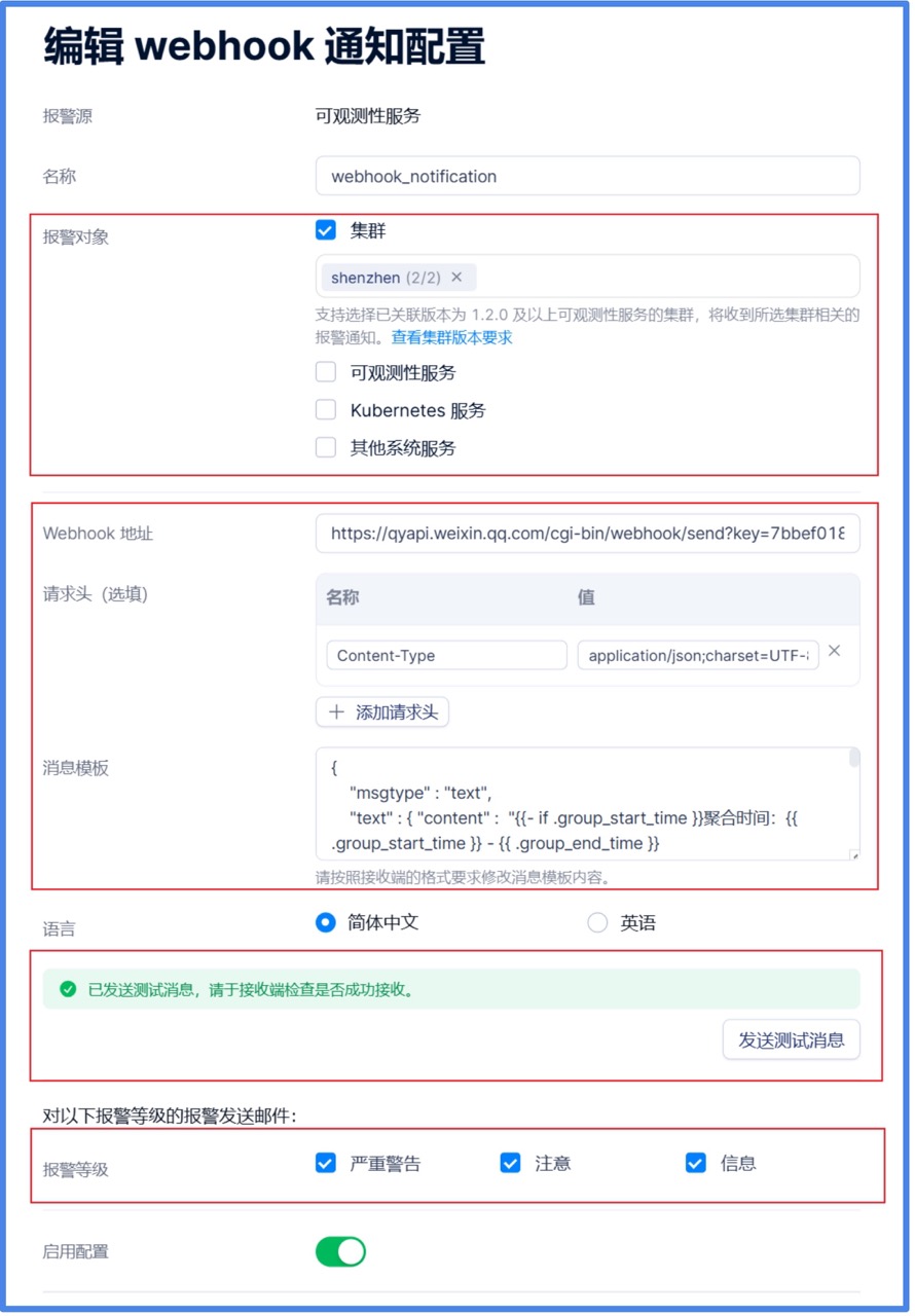 | Webhook 通知 | 可向企业内部系统、IM 平台推送告警消息,更加及时有效 |