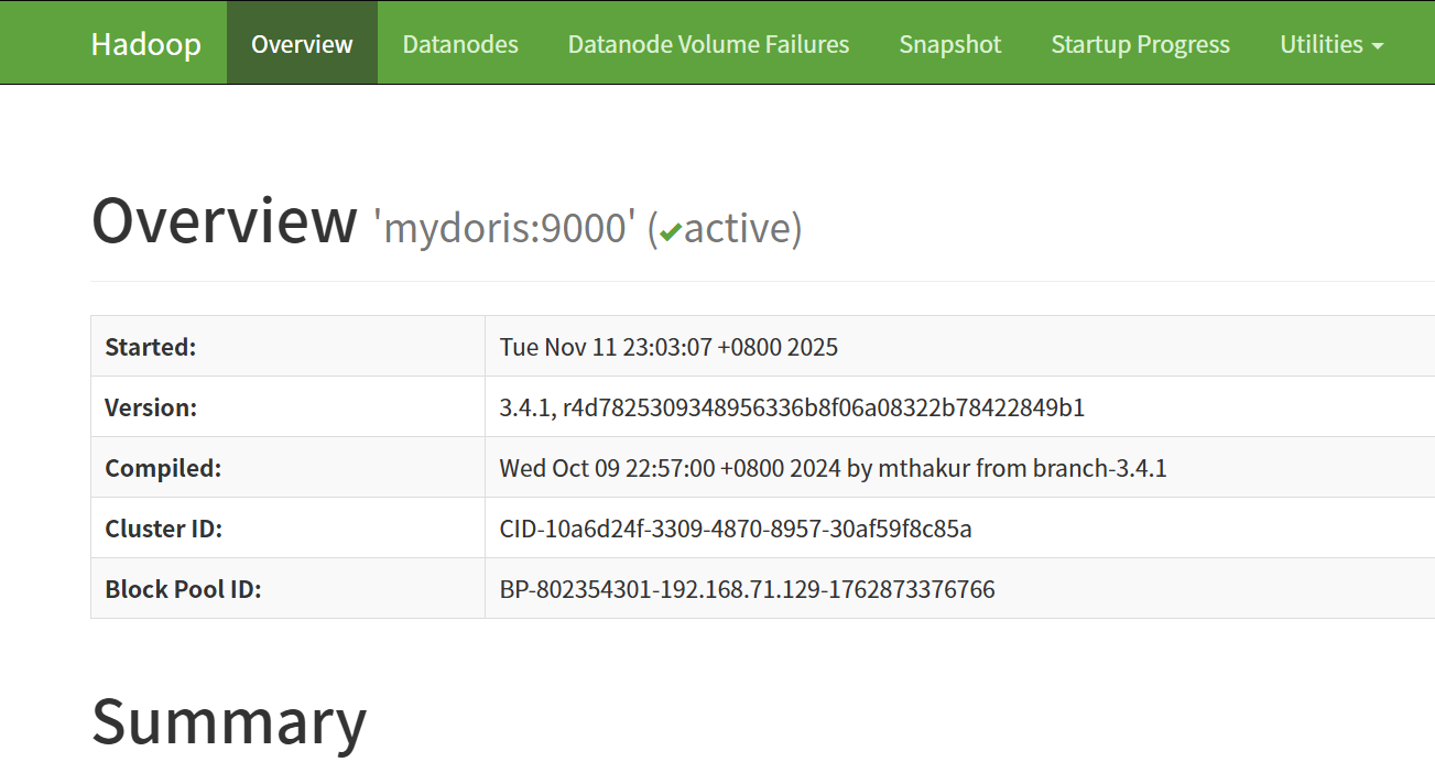 - HDFS: http://mydoris:9870