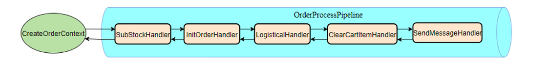 由于创建订单流程需要操作多张数据库表,涉及到一连串繁琐的操作,把完成所有操作需要执行的代码都书写到一个类的某个方法中,将会使该方法中的代码行数特别多,且如果代码执行过程中如果出现运行时错误,错误也不好排查。 Pipeline 设计模式又称为流水线设计模式,如果某个任务的处理步骤比较冗长,需要先后由数个不同的阶段分别处理来最终完成,每个阶段的处理结果与下一阶段的处理结果相互联系不可分割,这时候就适合使用 Pipeline 设计模式进行处理。
