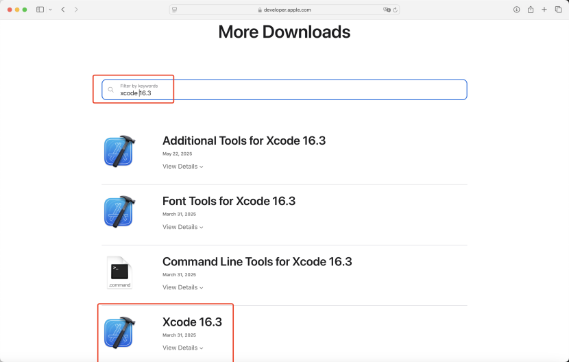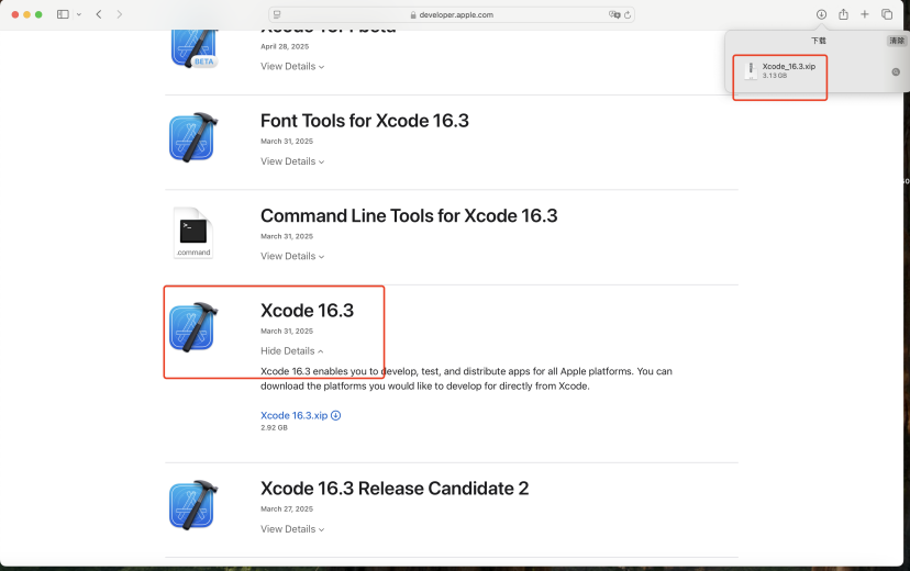 确认pc的版本后在网上查询,相应匹配的版本,如果不匹配是无法安装的。我的是macOS sequoia 15.2,对应的是Xcode16.3。