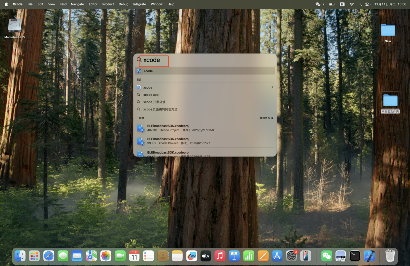 点击comand+空格,输入Xcode,显示Xcode程序。