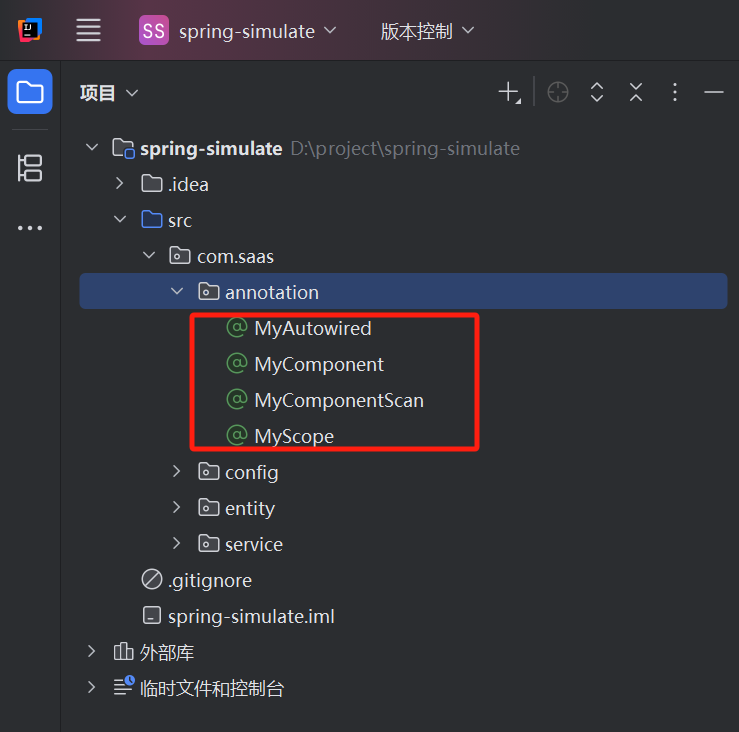 public class MySpringApplicationContext {/*** 配置类*/private Class configClass;/*** bean信息容器*/private ConcurrentHashMap<String, MyBeanDefinition> myBeanDefinitionMap = new ConcurrentHashMap<>();/*** 单例池*/private ConcurrentHashMap<String, Object> singletonObjects = new ConcurrentHashMap<>();public MySpringApplicationContext(Class configClass) {//赋值配置类this.configClass = configClass;//进行扫描操作//判断是否是扫描路径注解if(configClass.isAnnotationPresent(MyComponentScan.class)){MyComponentScan myComponentScan =(MyComponentScan) configClass.getAnnotation(MyComponentScan.class);//获取扫描路径("com.saas.service")String scanPath = myComponentScan.value();ClassLoader classLoader = MySpringApplicationContext.class.getClassLoader();//获取路径,需要转换成("com/saas/service")scanPath = scanPath.replace('.', '/');URL resourceUrl = classLoader.getResource(scanPath);//获取文件File file = new File(resourceUrl.getFile());//判断是否是文件夹if(file.isDirectory()){File[] files = file.listFiles();for(File f : files){//获取文件的绝对路径String fileAbsolutePath = f.getAbsolutePath();//获取以.class后缀的文件if(fileAbsolutePath.endsWith(".class")){//获取类名称String className = fileAbsolutePath.substring(fileAbsolutePath.indexOf("com"),fileAbsolutePath.indexOf(".class")).replace("\\",".");try {Class<?> clazz = classLoader.loadClass(className);//判断类是否有需要注入的属性if(clazz.isAnnotationPresent(MyComponent.class)){MyBeanDefinition myBeanDefinition = new MyBeanDefinition();myBeanDefinition.setType(clazz);//判断是否单列if(clazz.isAnnotationPresent(MyScope.class)){MyScope myScope = clazz.getAnnotation(MyScope.class);String myScopeValue = myScope.value();myBeanDefinition.setScope(myScopeValue);}else {myBeanDefinition.setScope("singleton");}//获取bean的名称,为了放入容器里面MyComponent myComponent = clazz.getAnnotation(MyComponent.class);String beanValue = myComponent.value();//放入容器里面myBeanDefinitionMap.put(beanValue, myBeanDefinition);}} catch (ClassNotFoundException e) {throw new RuntimeException(e);}}}}}//循环for(String beanName : myBeanDefinitionMap.keySet()){MyBeanDefinitionmyBeanDefinition = myBeanDefinitionMap.get(beanName);String scope = myBeanDefinition.getScope();if("singleton".equals(scope)){Object bean = crateBean(beanName, myBeanDefinition);//将bean放入单例池singletonObjects.put(beanName, bean);}}}/*** 通过bean名称创建一个对象* @param beanName* @param myBeanDefinition* @return*/private Object crateBean(String beanName,MyBeanDefinition myBeanDefinition){Class clazz = myBeanDefinition.getType();try {//实例化对象Object instance = clazz.getConstructor().newInstance();//遍历类的字段赋值(spring内部会根据名称或类型进行bean匹配,此处省略)for (Field field : clazz.getDeclaredFields()) {if(field.isAnnotationPresent(MyAutowired.class)){field.setAccessible(true);field.set(instance, getBean(field.getName()));}}return instance;} catch (InstantiationException e) {throw new RuntimeException(e);} catch (IllegalAccessException e) {throw new RuntimeException(e);} catch (InvocationTargetException e) {throw new RuntimeException(e);} catch (NoSuchMethodException e) {throw new RuntimeException(e);}}/*** 通过bean的名称获取对象* @param beanName* @return*/public Object getBean(String beanName) {MyBeanDefinition myBeanDefinition = myBeanDefinitionMap.get(beanName);if(myBeanDefinition == null){throw new NullPointerException();}else {String scope = myBeanDefinition.getScope();//判断bean的作用域是否单例if("singleton".equals(scope)){Object bean = singletonObjects.get(beanName);if (bean == null) {//创建bean对象crateBean(beanName, myBeanDefinition);//将bean放入单例池singletonObjects.put(beanName, bean);}return bean;}else {//创建bean对象return crateBean(beanName, myBeanDefinition);}}}
