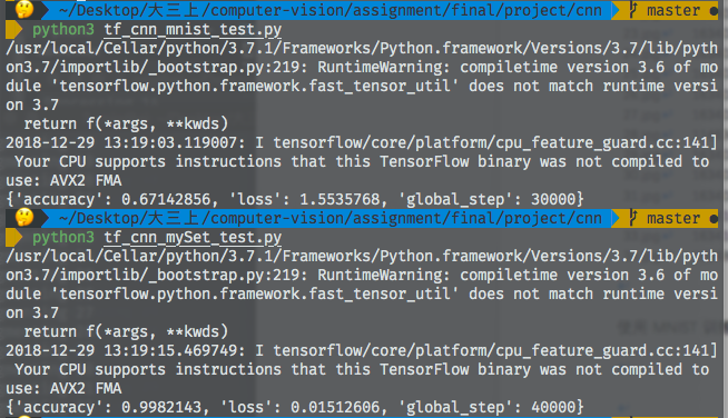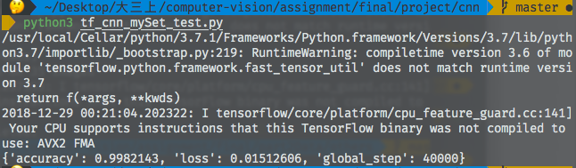 以上2个文件分别对MNIST 数据集进行测试与训练,训练结果保存在mnist 文件夹下。 - tf_cnn_mySet_test.py,