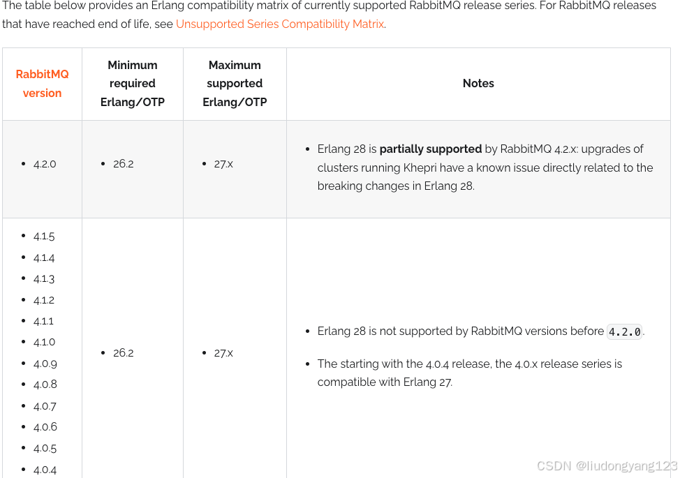 1、下面这个地址是erlang和rabbitmq的版本对应关系