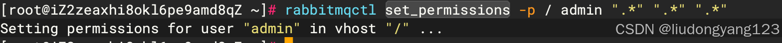 rabbitmqctl set_permissions -p / admin ".*" ".*" ".*"