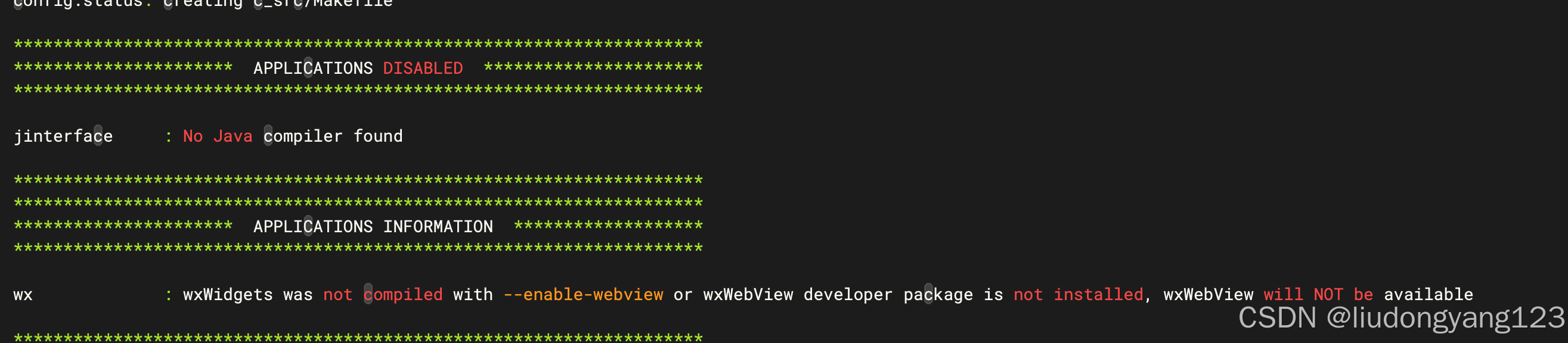 在执行 ./configure --prefix=/usr/local/erlang --without-javac,如果出现以下错误,可以忽律。