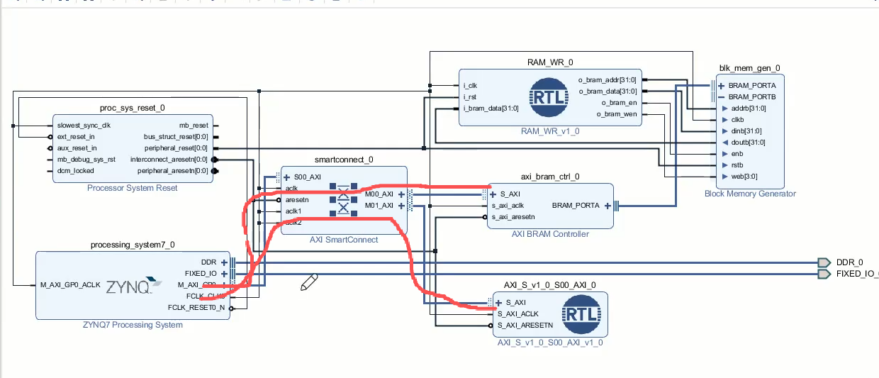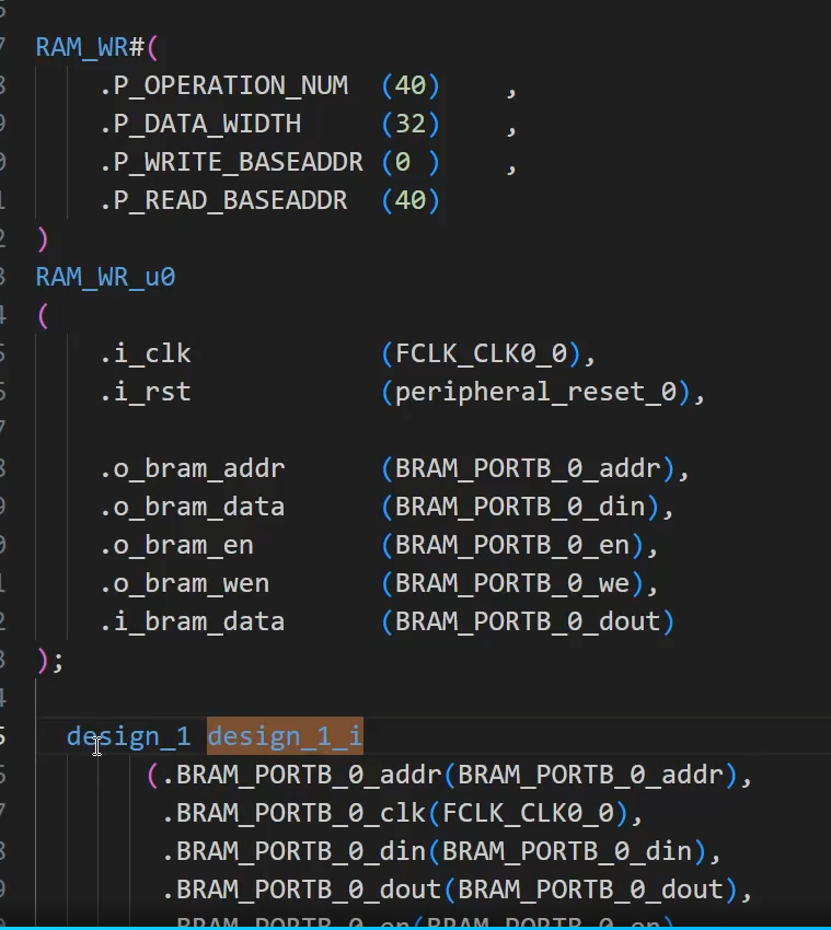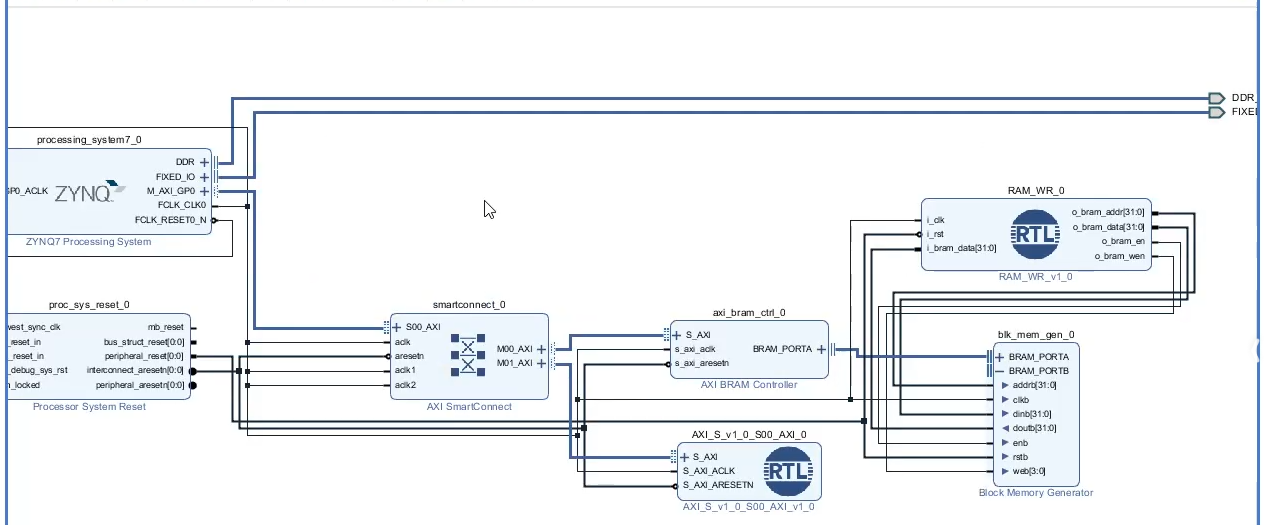 - BRAM交互方案:PS通过GP接口写入BRAM,PL端读取BRAM获取数据