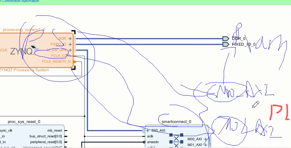 因为PS的总线直接控制PL无法完成,必须要互联模块