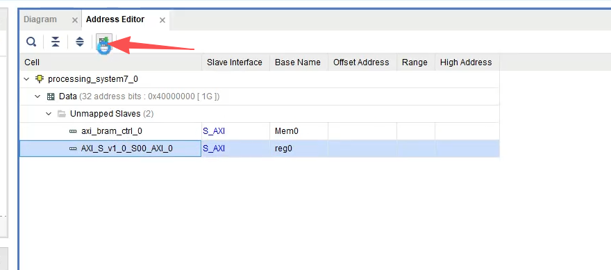 添加BRAM的时候发现地址大小无法设置,这个需要再AXI分配地址中进行设置,分配互联模块的m00_AXI的寻址范围