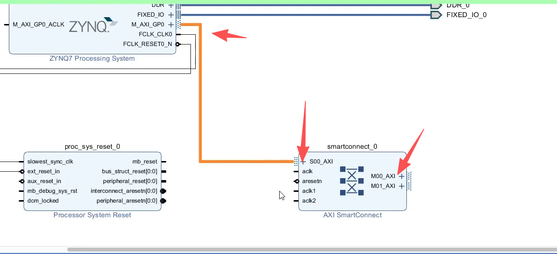 1.2第二种:在PS端口进行链接互联模块AXI Interconnect,然后直接跟PL进行交互(轻量级)