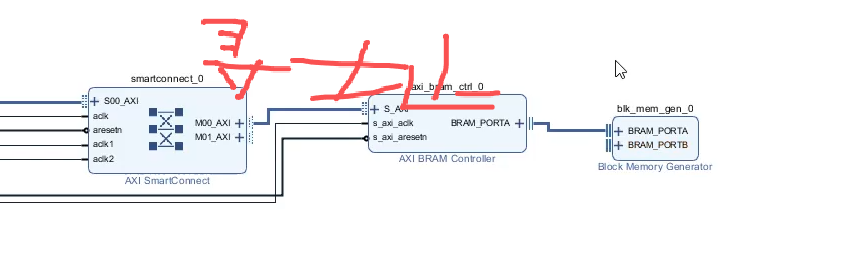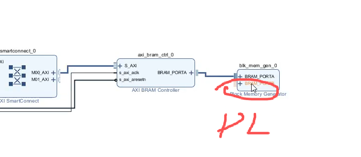 2.4采用两种交互 第一种采用通过互联模块第一个口控制bram与PL交互 第二种是直接与PL交互