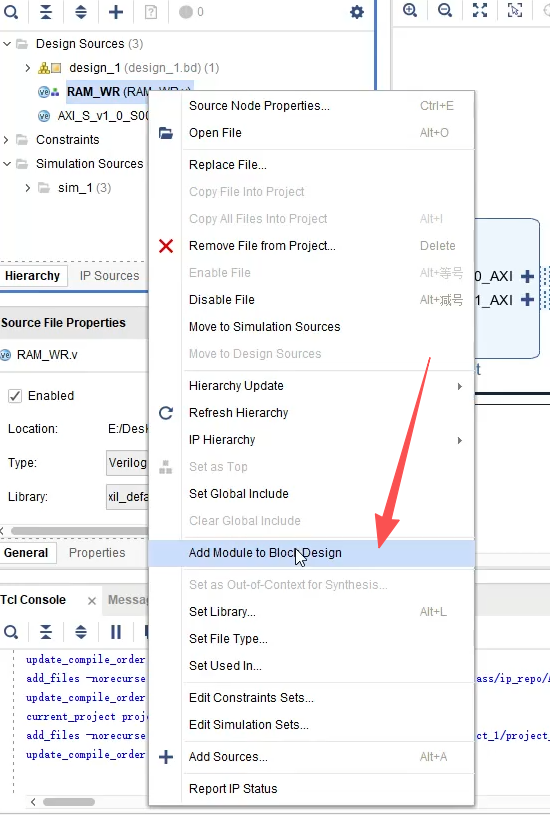 将编写完的代码添加进工程,然后送进BLOCK_dESIGN