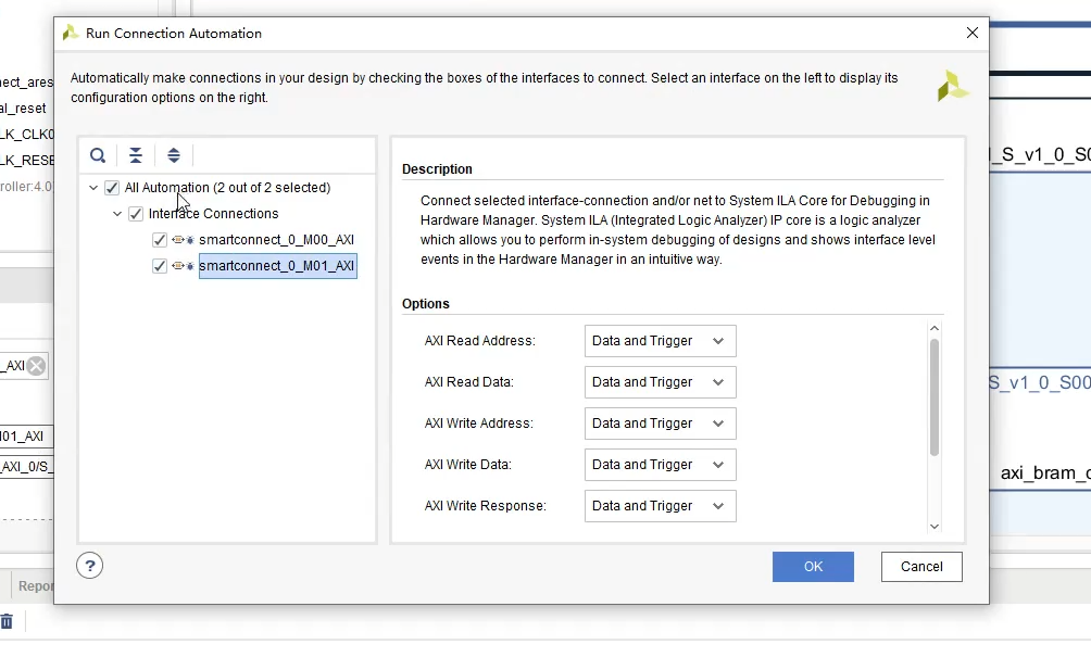 - 接口设置:主机端开启AXI从机接口,从机端开启GP接口
