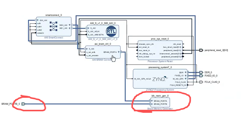 就是在PS 端口开一个GP接口,去控制Bram,然后PL 读Bram中的数据。